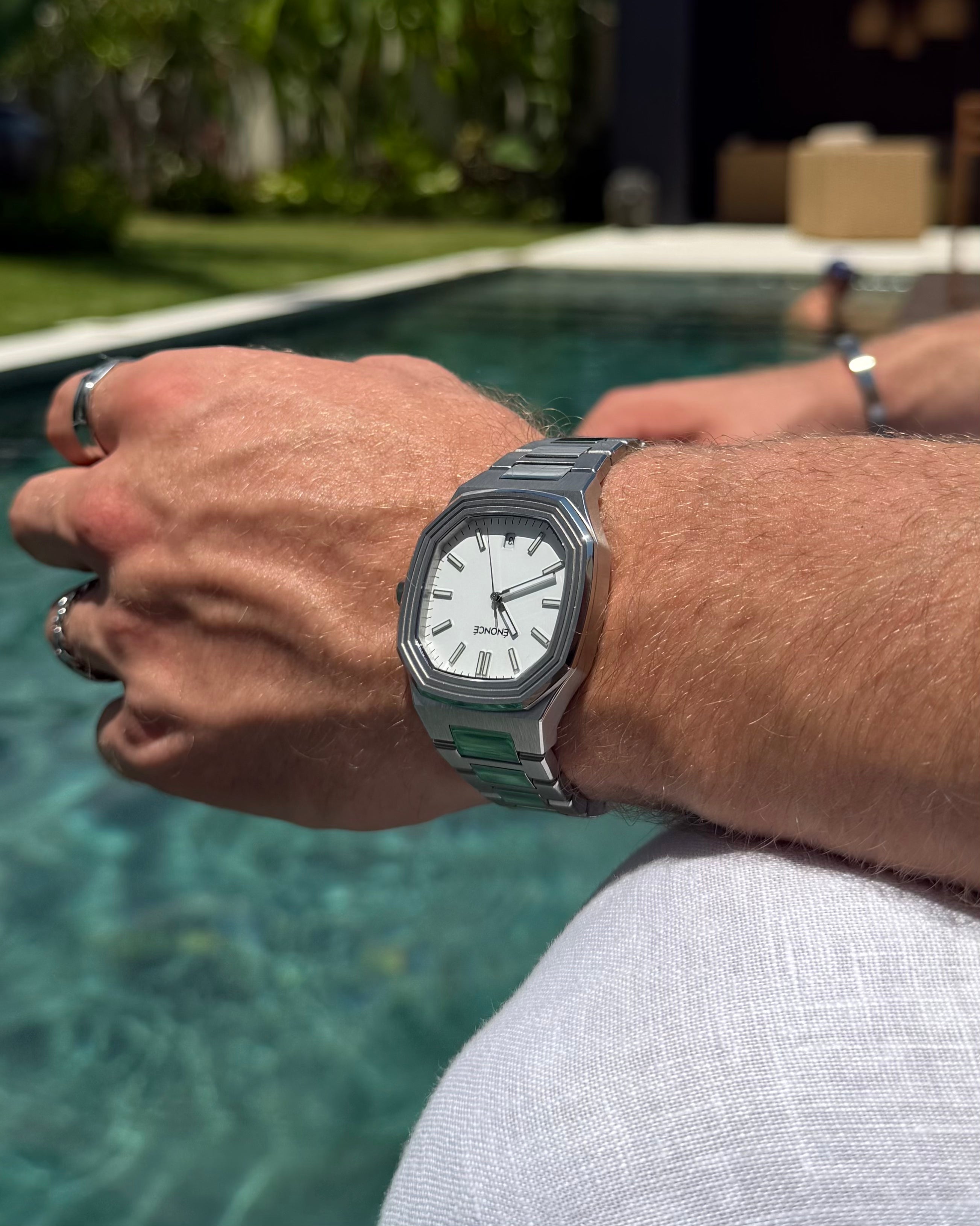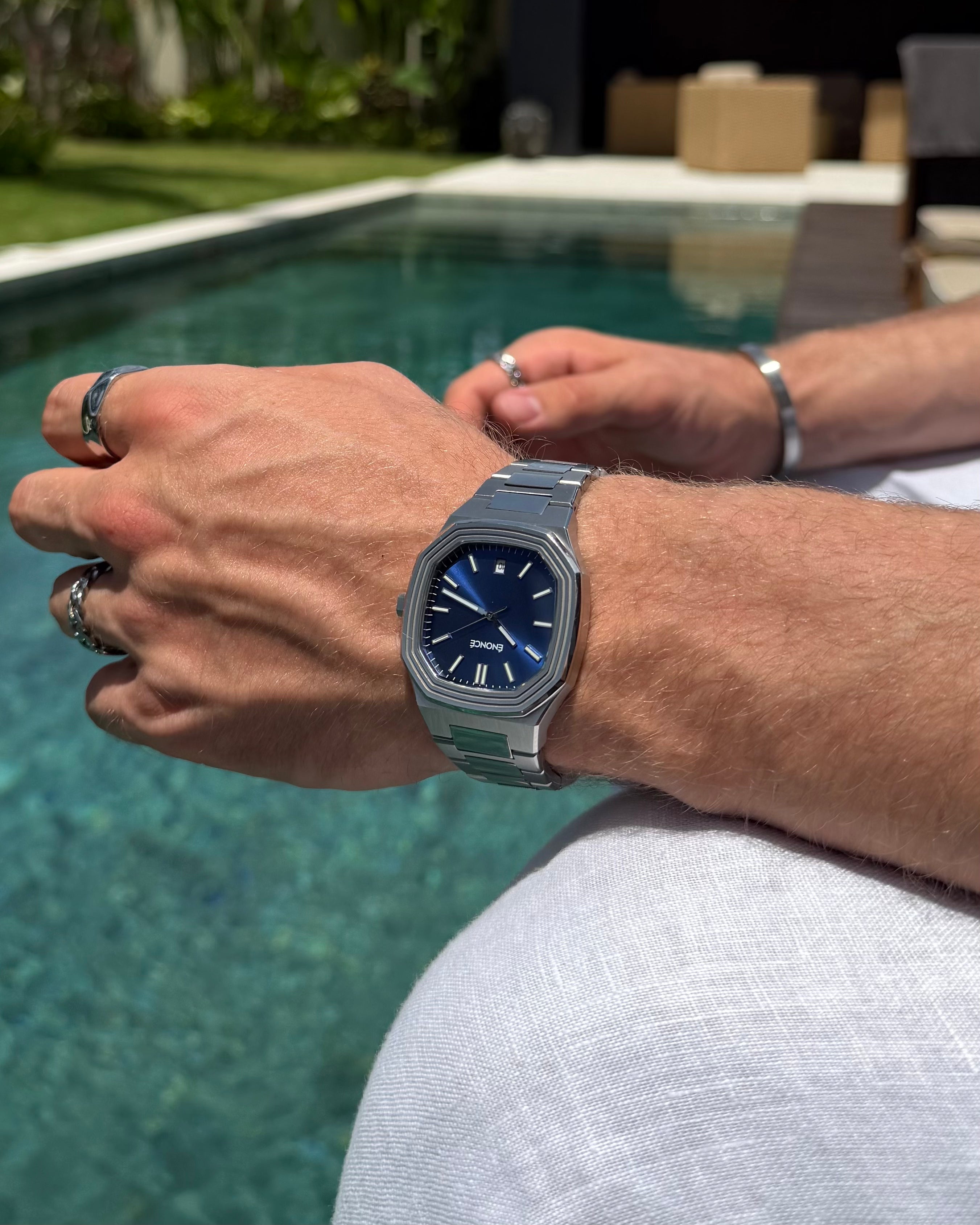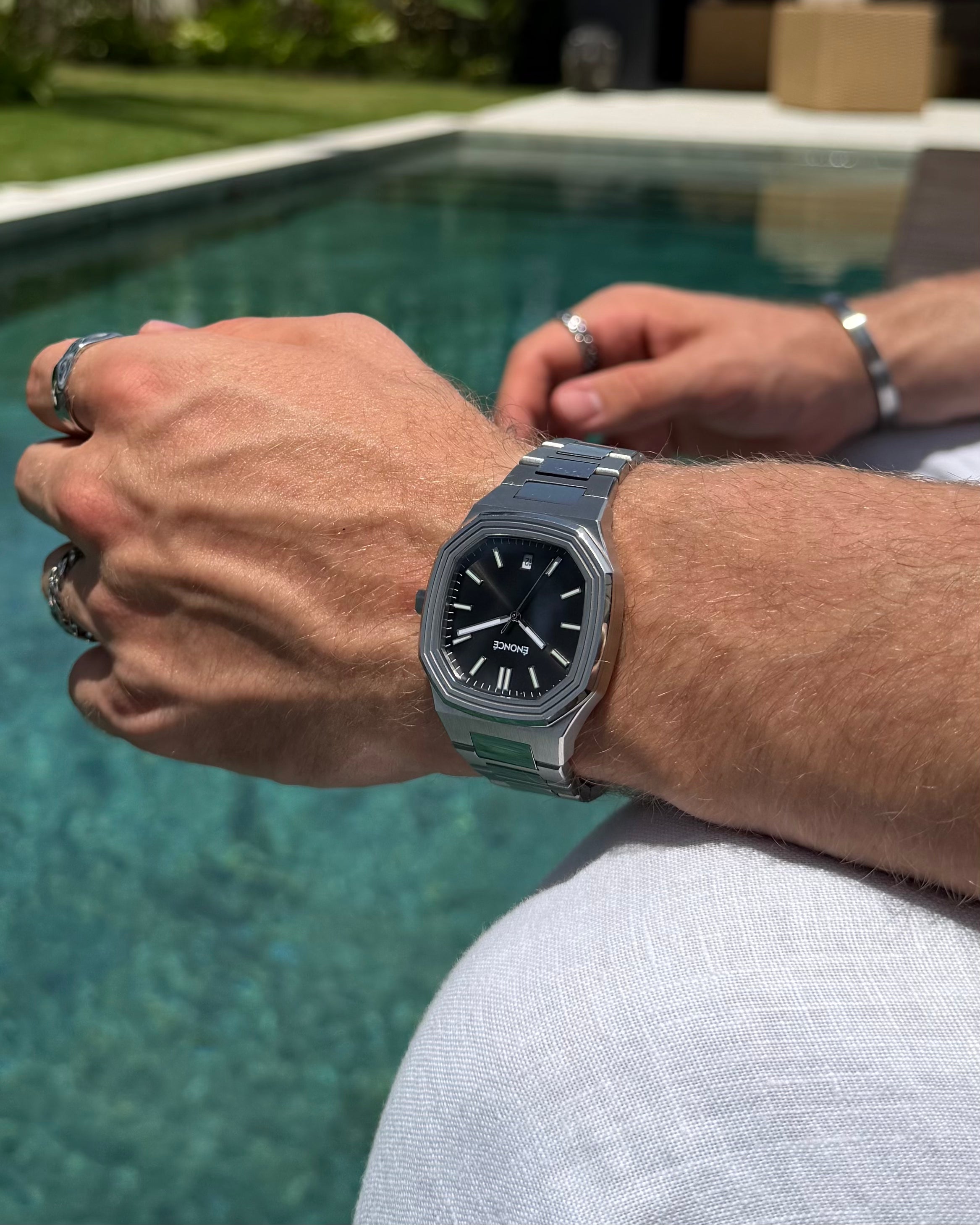Unsere Uhr ist bis zu 10 ATM wasserbeständig und bleibt in jeder Situation zuverlässig und voll funktionsfähig – sei es unter der Dusche oder beim Schwimmen.