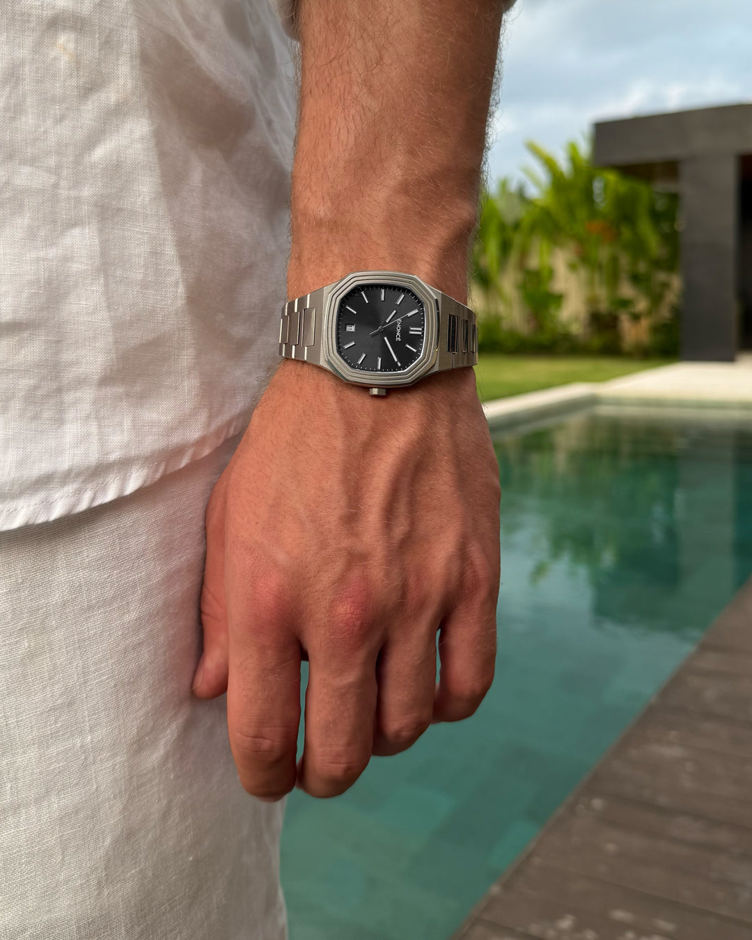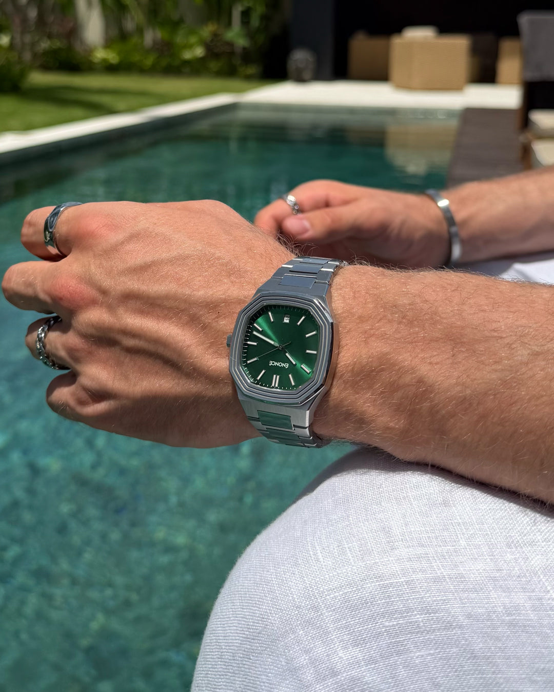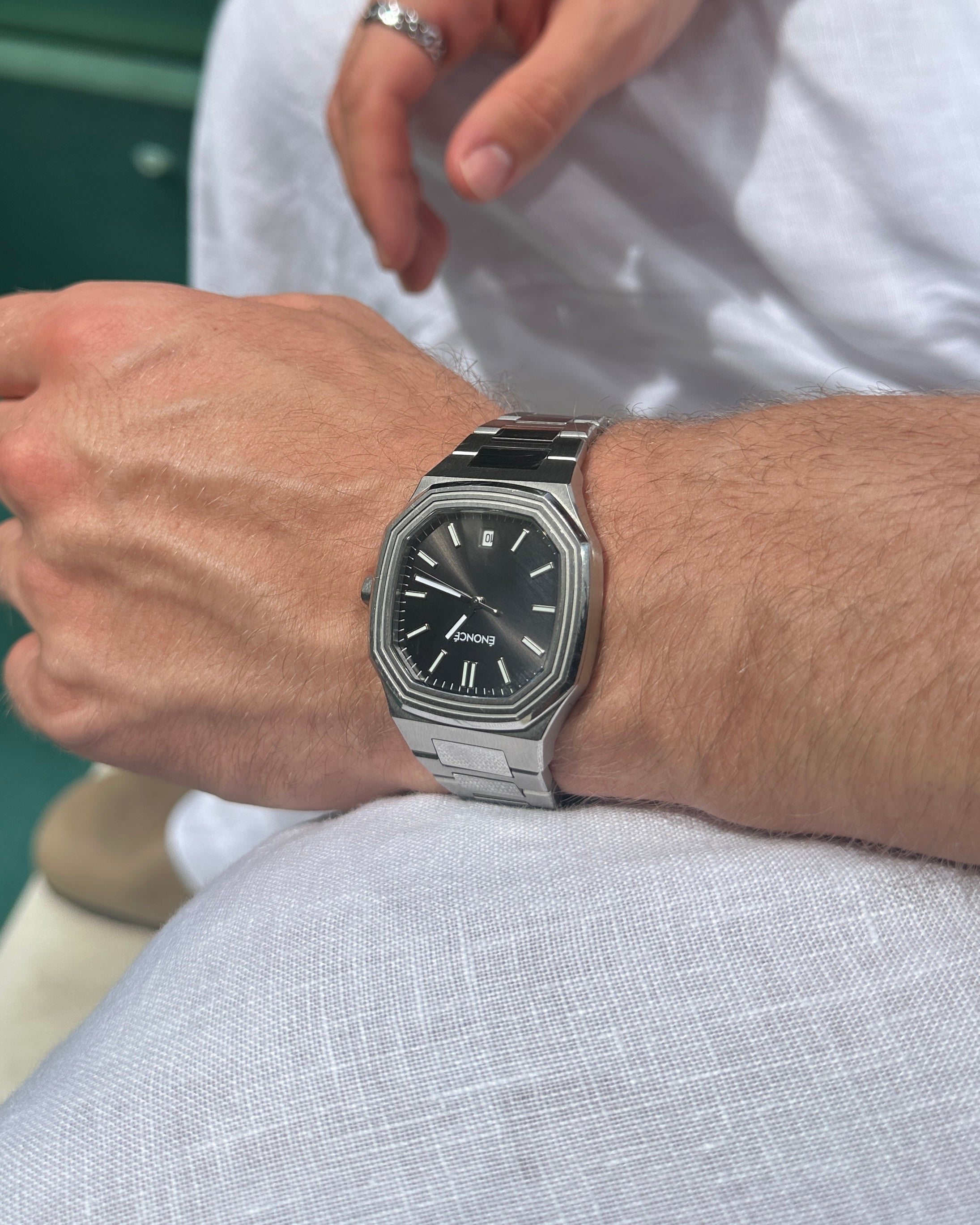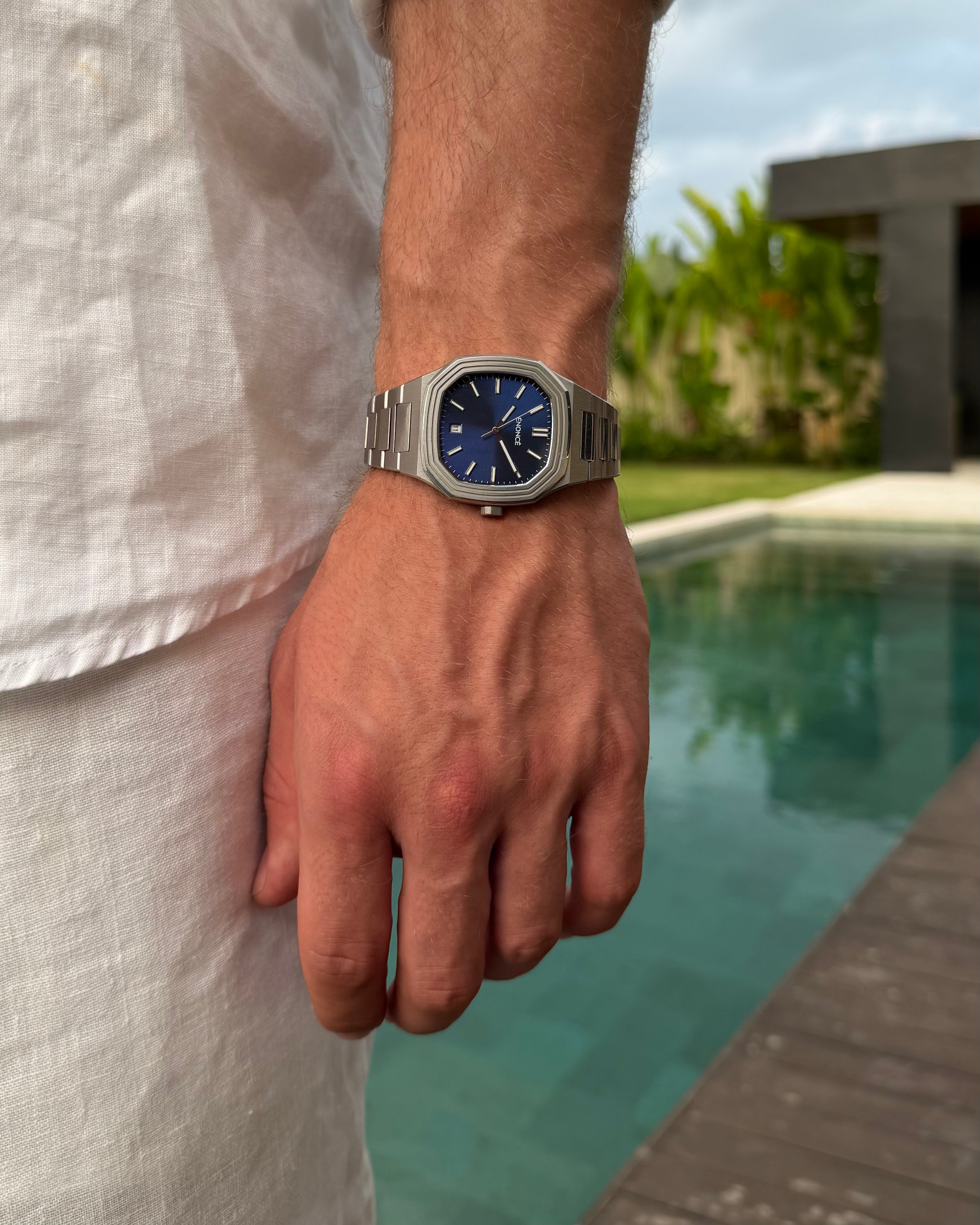 Unsere Uhr ist bis zu 10 ATM wasserbeständig und bleibt in jeder Situation zuverlässig und voll funktionsfähig – sei es unter der Dusche oder beim Schwimmen.